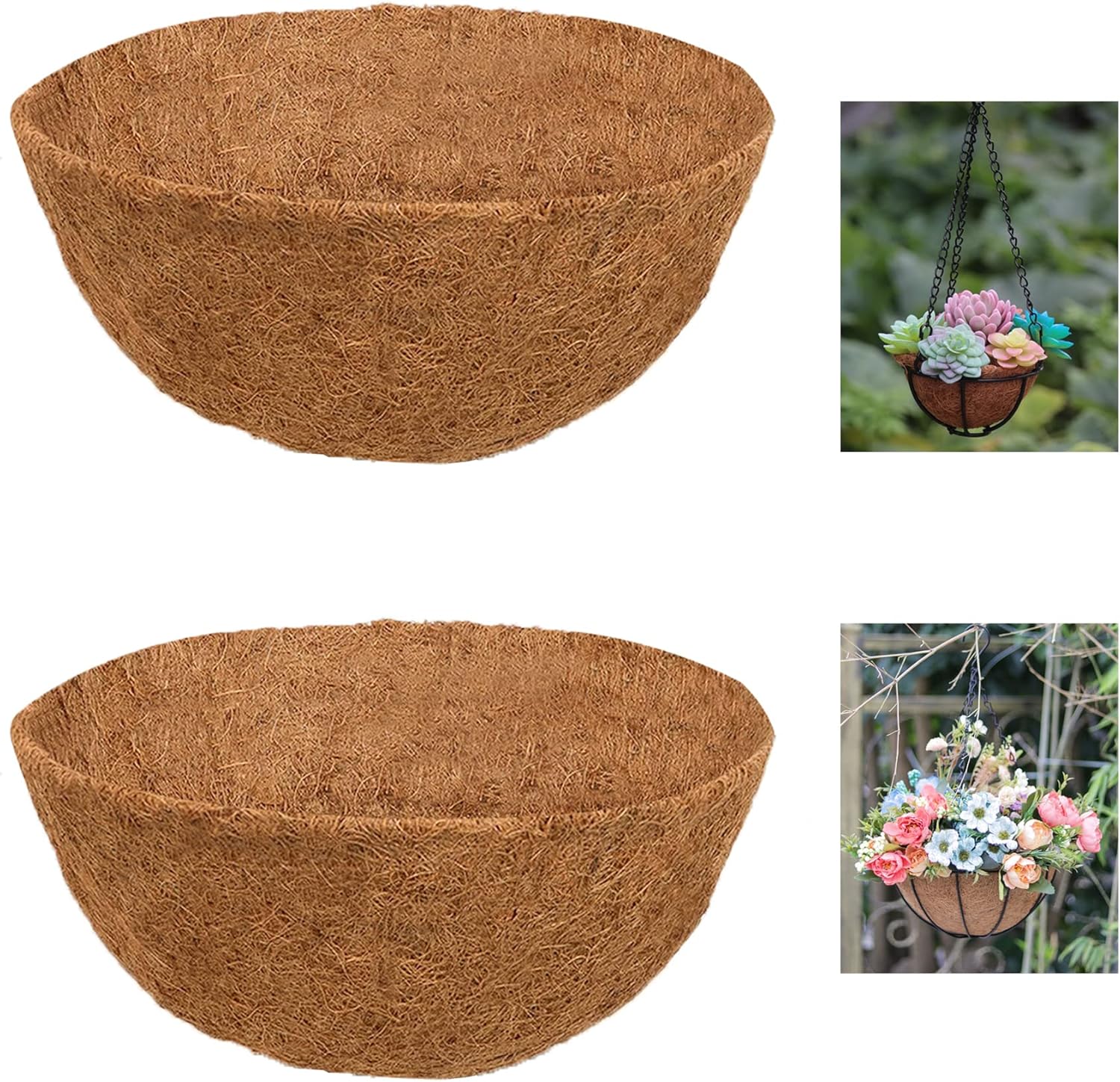 Coir basket liners, made from coconut fibers, are used to line hanging baskets, window boxes, and other planters to help retain moisture and promote healthy plant growth. They provide good drainage and air circulation while holding water, reducing the need for frequent watering. To use, simply place the liner in the basket, moisten it, add soil, and plant your chosen flowers or plants.